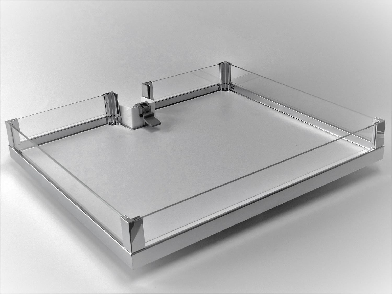 Комплект полок 5шт + 1 ручка, со стеклянными боковинами, Конвой Лавидо 600 мм, Арена ВАРИО, цвет ХРОМ, цвет дна Серый, антислип