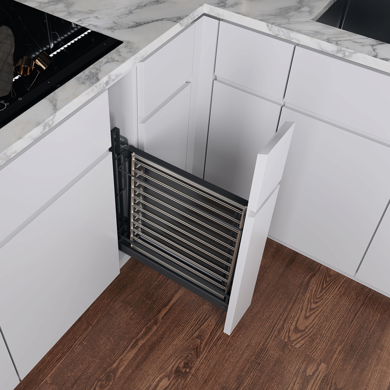 Бутылочница для противней №15 H 542 фасад 150 мм 3D